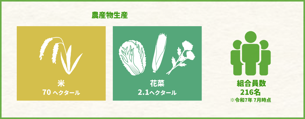 私たちの法人は、平成 19 年に設立されて以来、地元の農家の皆様と協力し合いながら、